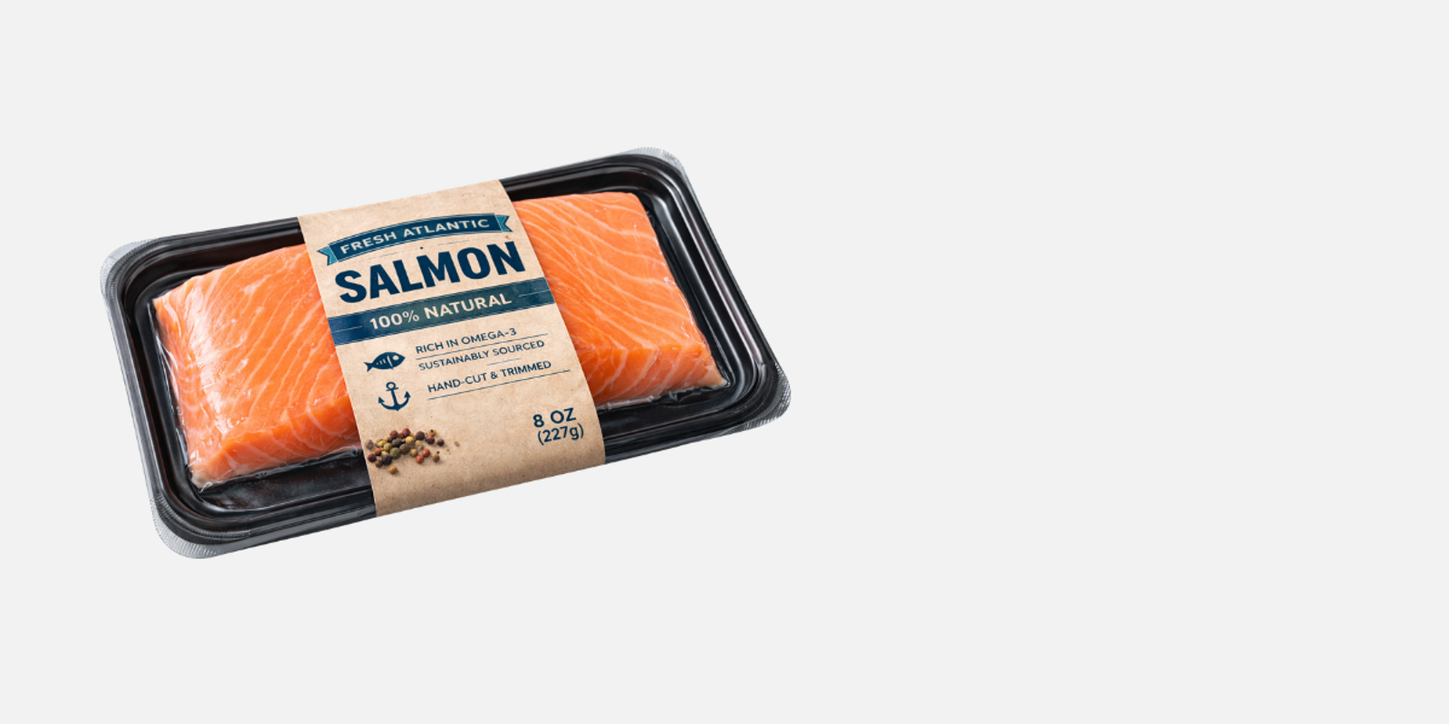 Skin packaging is widely used to showcase fresh products like fish and meat. By closely following the shape of the product, it offers excellent visibility and a premium appearance on the shelf.