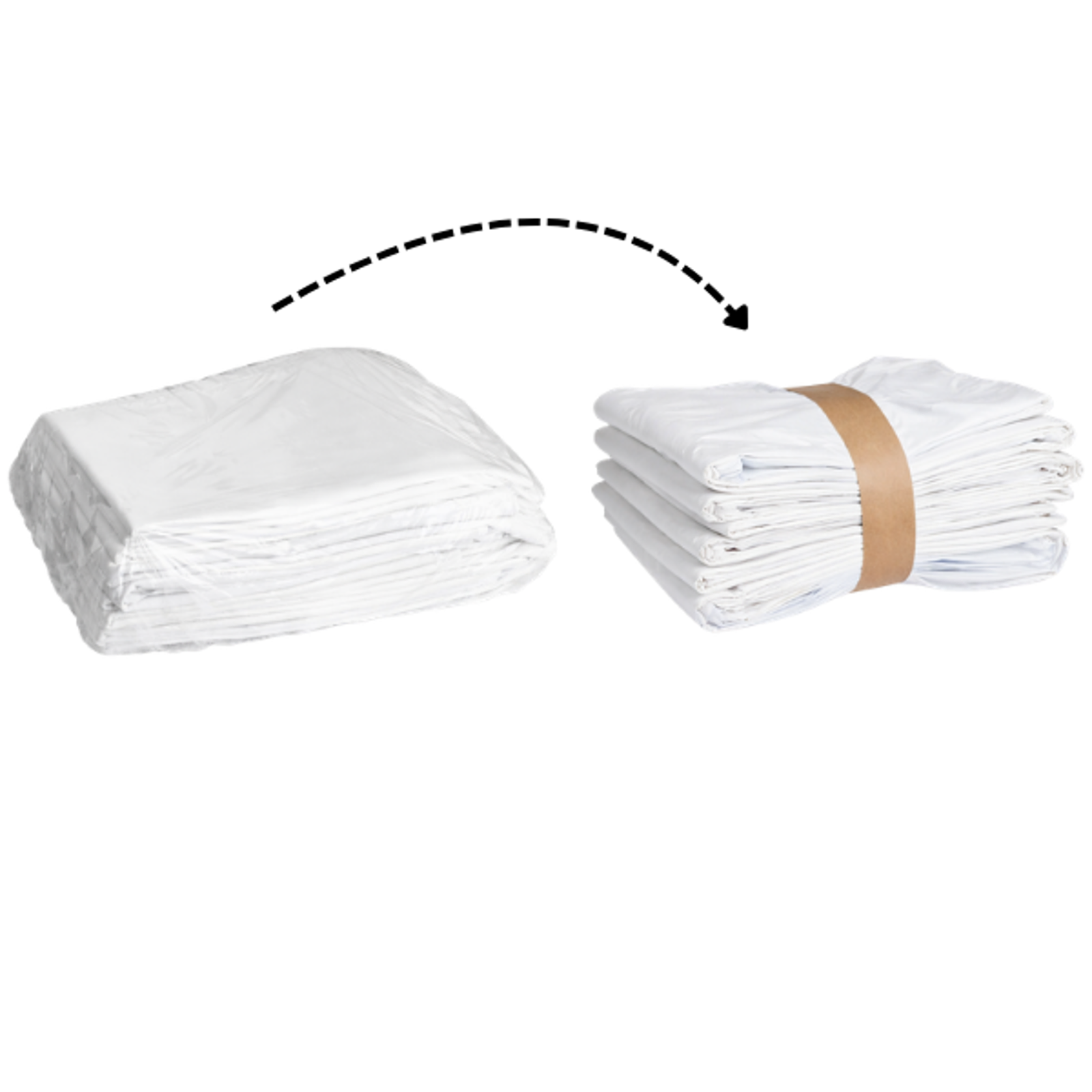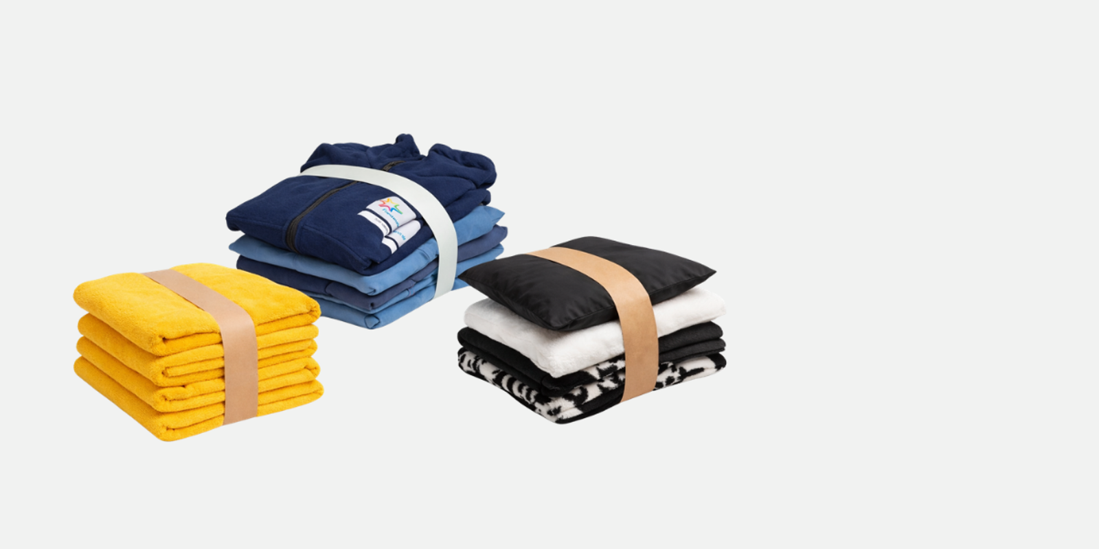 Applying banding material around textile products creates secure bundles without enclosing them in unnecessary packaging.